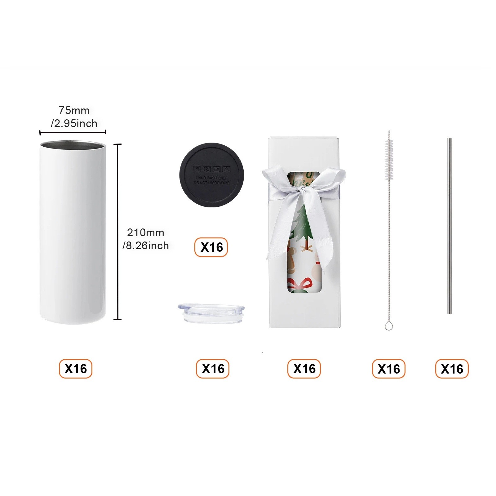 Praktická sada sublimačních tumblerů umožňuje vytvářet vlastní motivy na hladkém bílém povrchu. Každý tumbler má objem 591 ml, což odpovídá běžné velikosti pro každodenní použití na studené i teplé nápoje. Rovný tvar usnadňuje aplikaci potisku a zároveň zajišťuje pohodlné držení. Díky jednotnému provedení je sada vhodná pro výrobu více kusů se stejným designem. Bílé provedení poskytuje univerzální základ pro personalizaci.