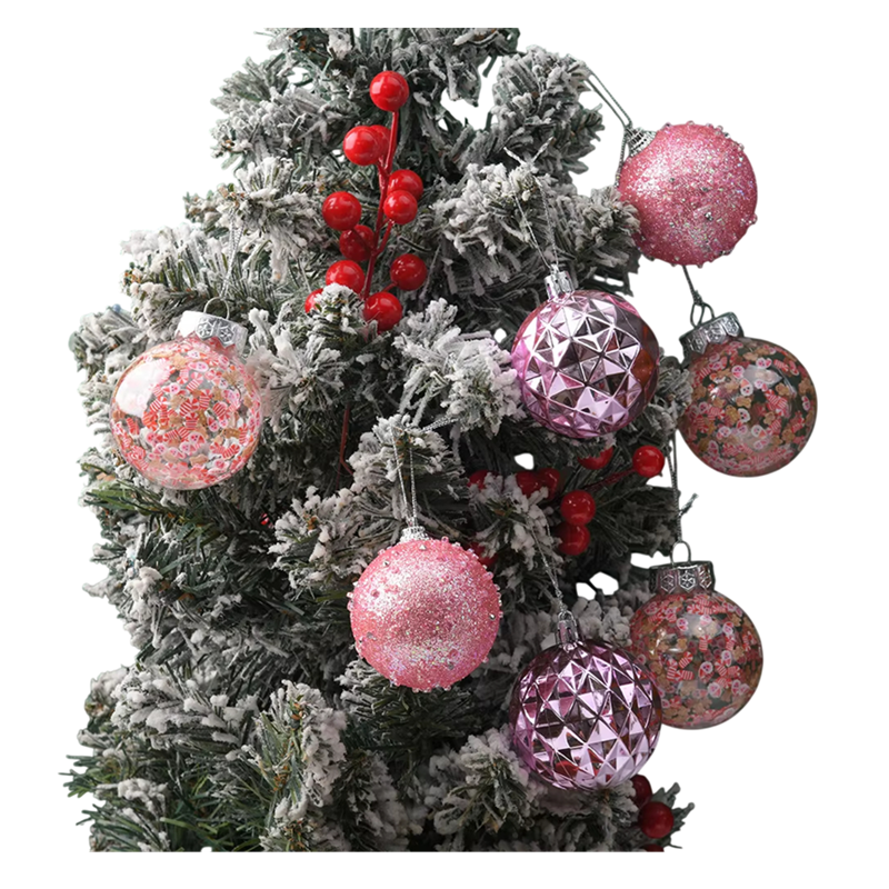 Tato sada růžových Vánočních koulí je skvělým doplňkem pro každého, kdo hledá jemnější a modernější pojetí sváteční výzdoby. Koule jsou navrženy v elegantním odstínu růžové a díky své velikosti 6 cm se ideálně hodí pro rovnoměrné zdobení stromečku nebo jiných dekorativních aranžmá. Nerozbitné provedení zajišťuje bezpečné použití i v domácnostech s dětmi nebo zvířaty. Dekorace jsou lehké, snadno zavěšitelné a krásně vyniknou při denním i večerním osvětlení. Růžová barva dodá výzdobě nádech originality a jemnosti.