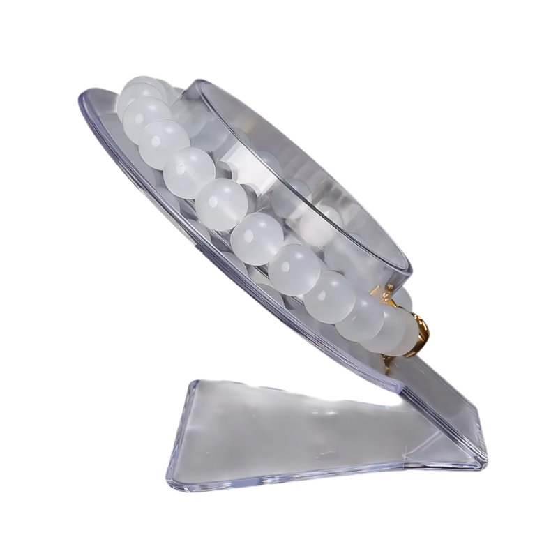 Průhledný akrylový držák na náramky je praktickým doplňkem pro uložení i vystavení šperků. Konstrukce umožňuje nasadit náramky tak, aby si zachovaly svůj tvar a byly snadno dostupné. Díky otevřenému provedení je manipulace jednoduchá a rychlá. Stojan je vhodný pro domácí použití i pro prezentaci šperků ve vitríně. Transparentní vzhled nechává vyniknout samotné doplňky bez rušivých prvků.