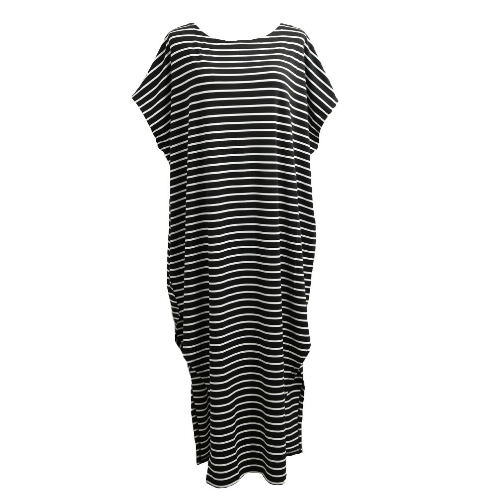 Asymetrické letní maxi šaty s proužky.