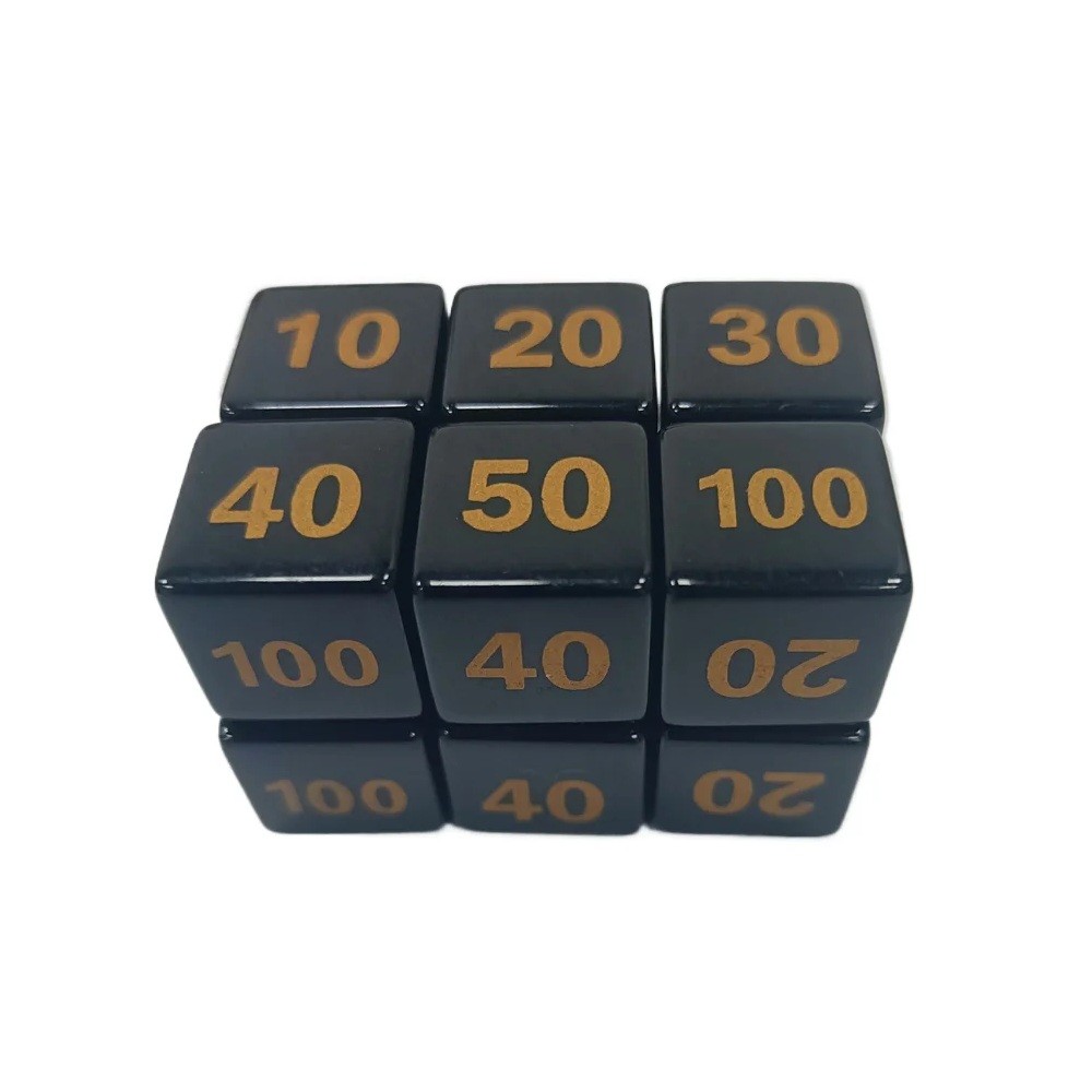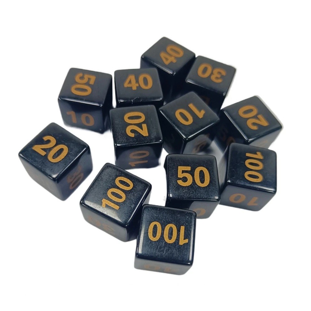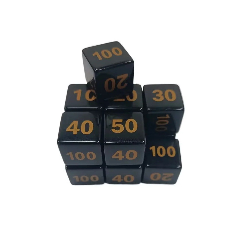 Každá varianta obsahuje deset kusů kostek stejné barvy a provedení, což zajišťuje jednotnost při hraní. Akrylový materiál poskytuje hladký povrch a příjemný pocit při manipulaci během hry. Černá varianta obsahuje 10 kostek o rozměrech 1,4 × 1,4 × 1,4 cm, které jsou vhodné pro kompaktní herní plochy. Červená varianta obsahuje 10 kostek o rozměrech 1,7 × 1,7 × 1,7 cm a díky zaobleným hranám nabízí komfortnější ovládání při častém používání. Kostky pomáhají udržet přehled na herním stole a zrychlují průběh herních soubojů.