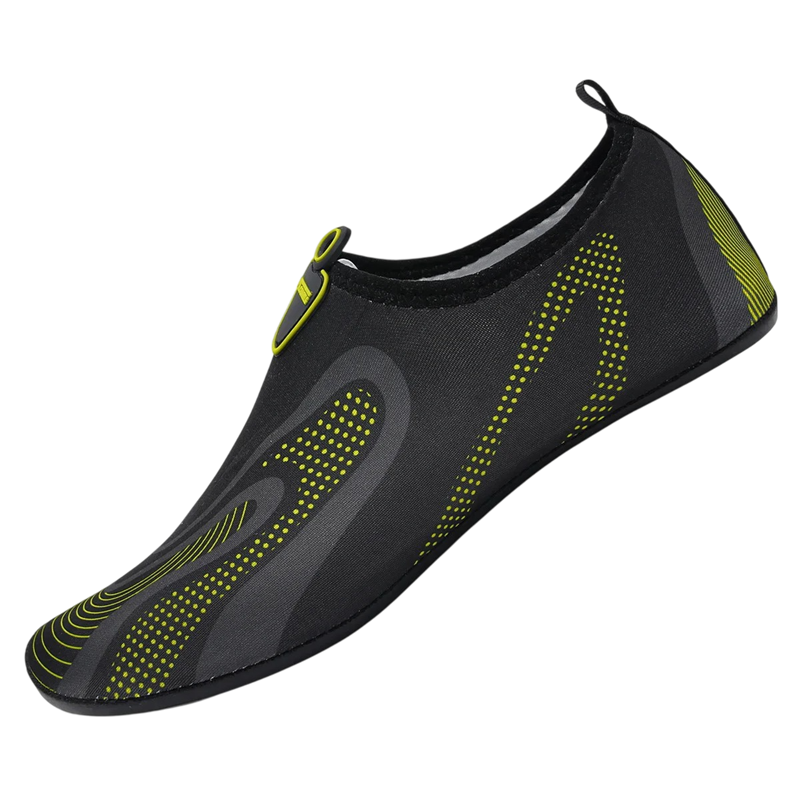 Praktická obuv do vody je ideální volbou pro letní dovolenou, vodní sporty i pravidelné návštěvy bazénu. Kombinace odolné podrážky a lehkého svršku zajišťuje pohodlí i ochranu při pohybu na mokrém povrchu. Díky použití kvalitního mikrovlákna jsou boty prodyšné, rychleschnoucí a příjemné na nošení. Černé unisex provedení se hodí pro ženy i muže a snadno se kombinuje s plavkami či sportovním oblečením.