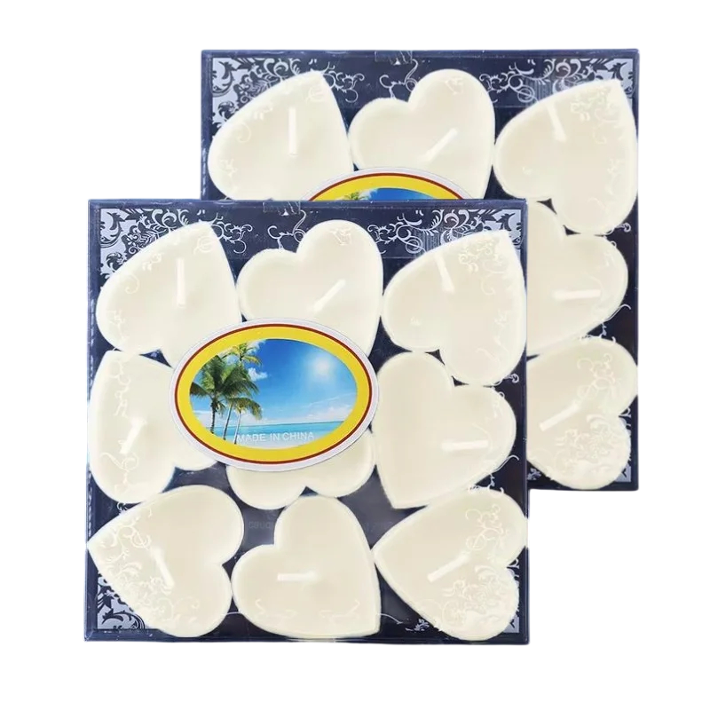 Dekorativní sada čajových svíček ve tvaru srdce je vhodná pro různé slavnostní i každodenní příležitosti. Díky jednotnému designu a kompaktním rozměrům 4 x 1,8 cm lze svíčky snadno rozmístit na stůl, do svícnů nebo použít jako součást tematické výzdoby.
