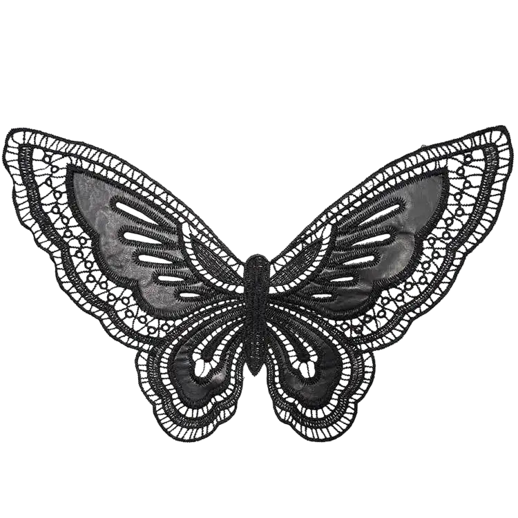 Černá krajková látka s motýlím vzorem 20 x 33 cm Směs polyesteru a bavlny dekorační krajka pro zdobení šatů oděvů a doplňků