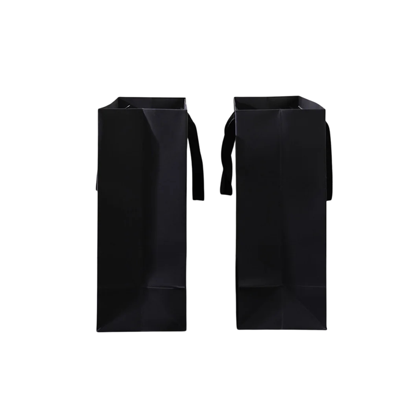 Tato velká černá papírová dárková taška je ideální pro balení větších dárků, oblečení, módních doplňků či obchodních prezentací. Vyrobena z pevného kartonového papíru vysoké gramáže, který zajišťuje stabilitu, odolnost a luxusní vzhled. Díky rozměrům 40 x 32 x 13 cm nabízí dostatek prostoru i pro větší předměty, přičemž si zachovává elegantní tvar a pevnost. Její matný černý povrch dodává balení profesionální a sofistikovaný vzhled, ideální pro osobní i firemní použití.