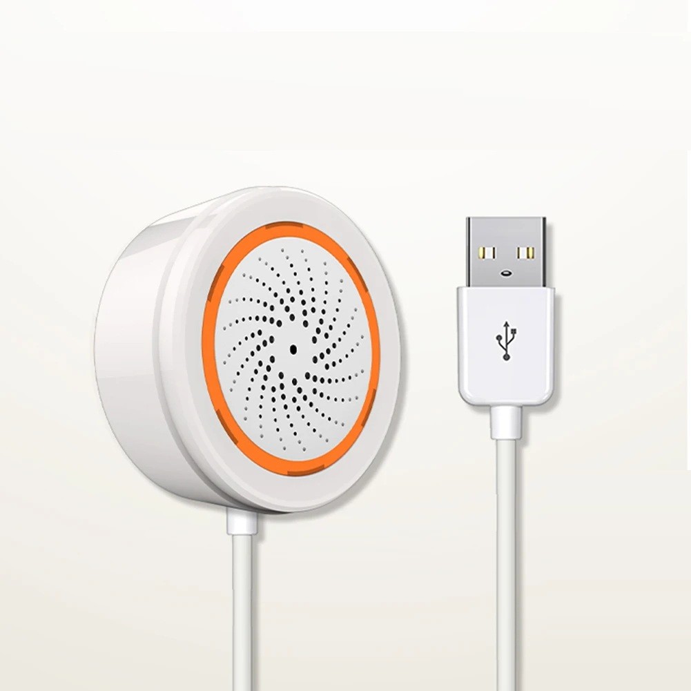 Chytrá bezdrátová siréna s světelným upozorněním 90 dB 68 × 68 × 33 mm Ovládání přes aplikaci pro domácí zabezpečení