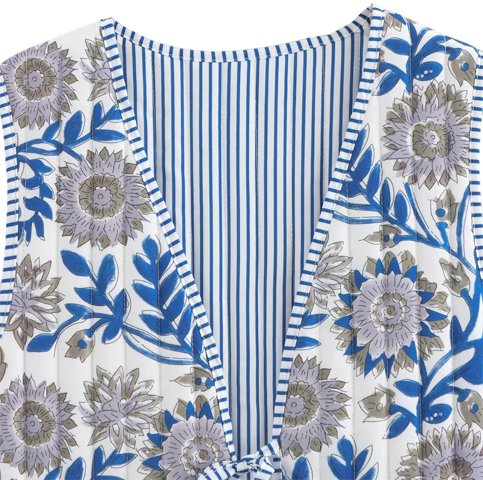• Jedinečný design s modrými vzory dodává vestě osobitý styl