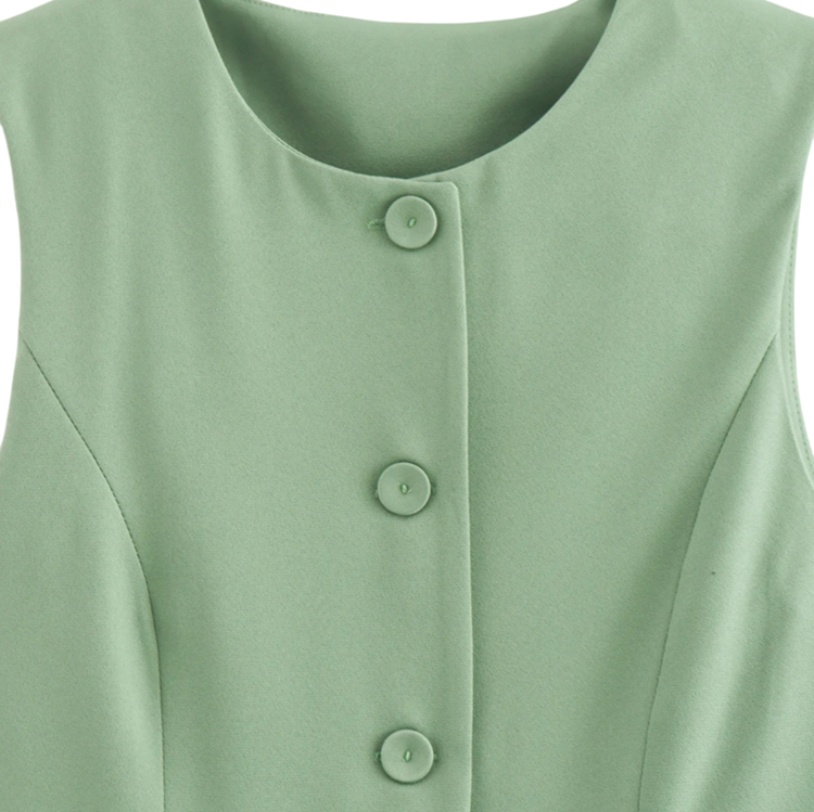 Úvodní strana Úvodní strana Oblečení a doplňky Dámské Dámské bundy a kabáty Dámské vesty Dámská elegantní jednobarevná vesta s výstřihem do O Zapínání na knoflíky Stylová polyesterová vesta bez rukávů pro každodenní i formální nošení