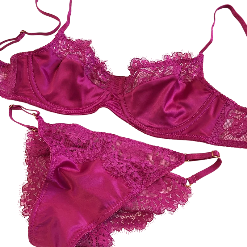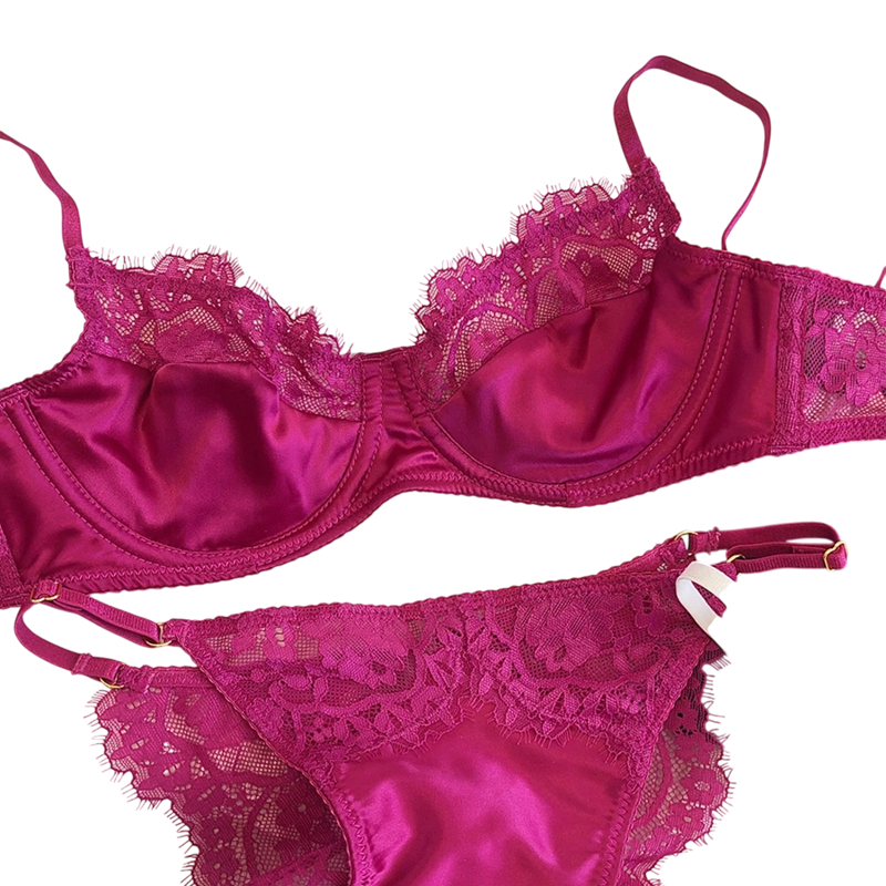Výrazným prvkem je kombinace hladkého povrchu a krajky, která dodává soupravě odlišný charakter. Podprsenka má tenká ramínka, která umožňují přizpůsobení při nošení. Materiál tvoří elastan a polyester, což zajišťuje pružnost a komfort. Konstrukce je vhodná pro běžné každodenní nošení, kdy je důležitá jednoduchost a pohodlí. Produkt je dostupný ve více barevných variantách, což umožňuje výběr podle preferencí.