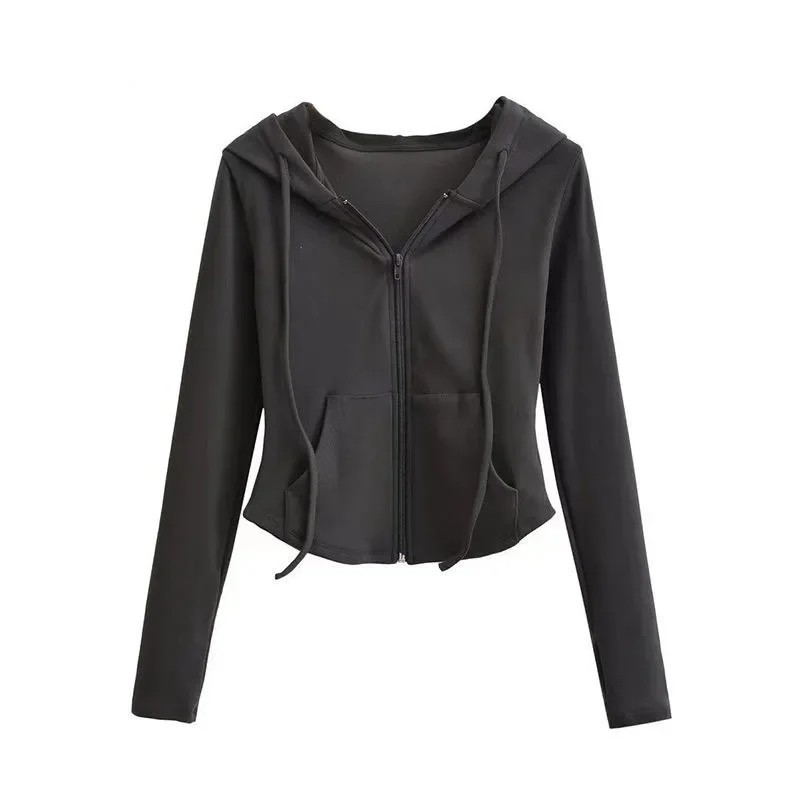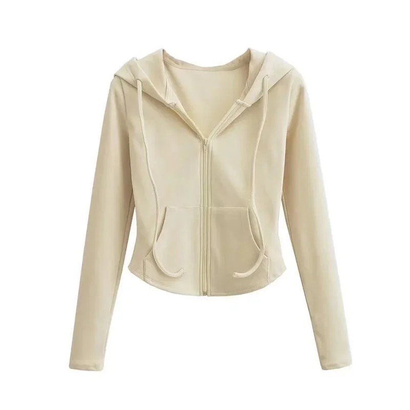 Dámská mikina na zip s kapucí a kapsami Jednobarevná mikina z měkkého polyesteru Pohodlný volnočasový svršek