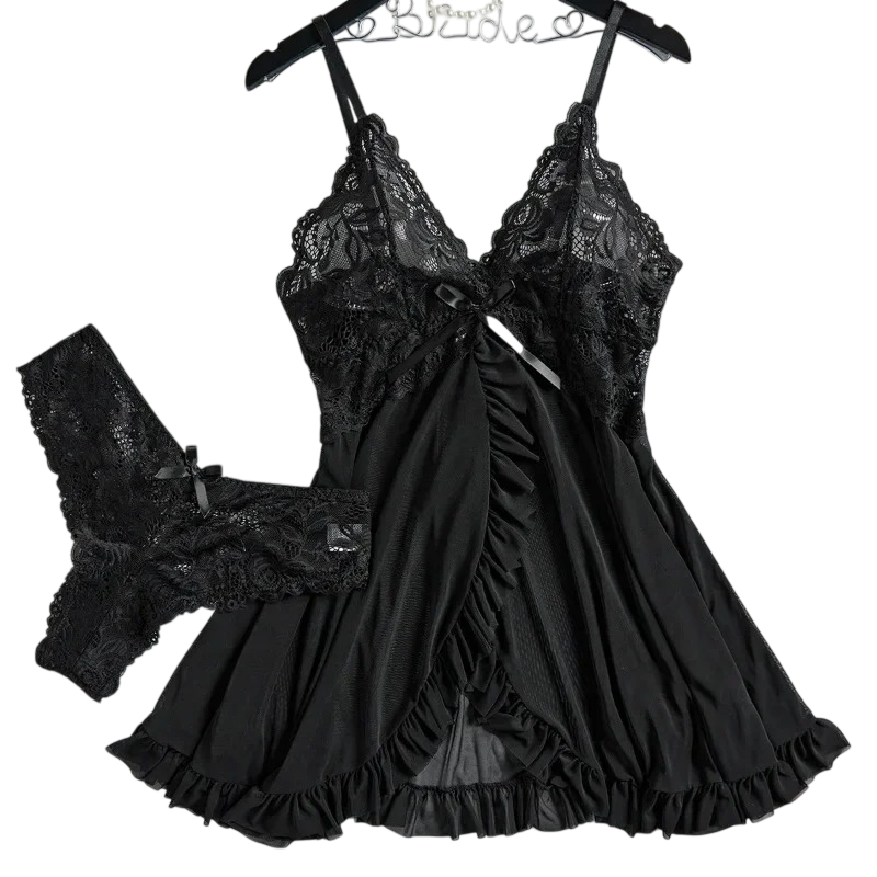 Dámská krajková noční souprava s košilkou a kalhotkami. Lehký polyester vhodný pro pohodlné nošení během dne i večera. Celý popis