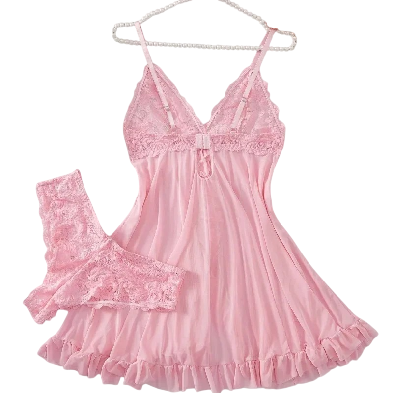 Úvodní strana Úvodní strana Oblečení a doplňky Dámské Dámské spodní prádlo Dámské soupravy spodního prádla Dámská noční souprava krajková košilka s ramínky a kalhotky polyester pro každodenní nošení