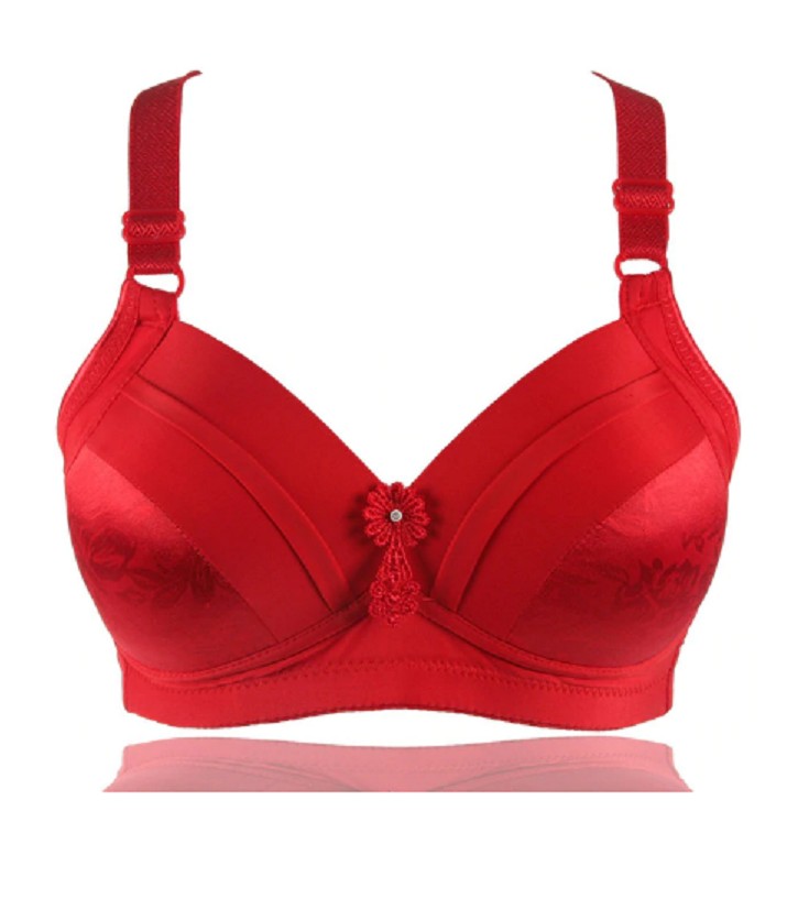 Podprsenka má mezi košíčky květinovou ozdobu.