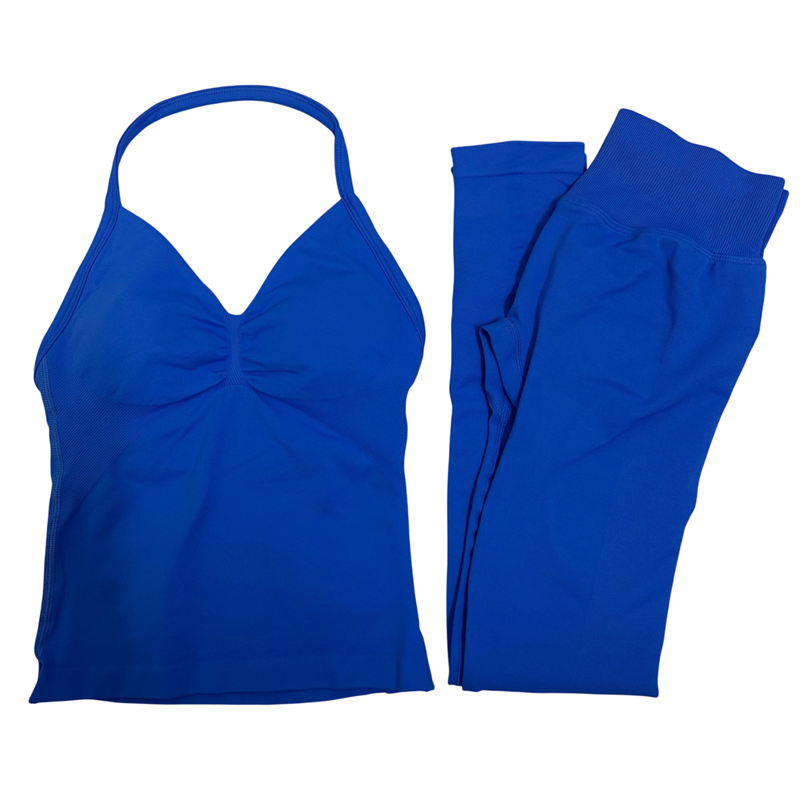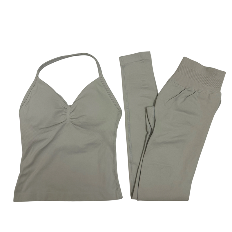 Dámská sportovní souprava s legínami a tílkem z nylonu a polyesteru. Ideální pro fitness, cvičení nebo volný čas, pohodlný a pružný materiál. Celý popis