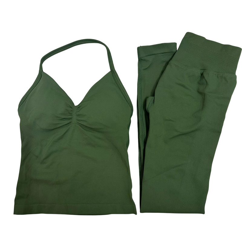 Dámská sportovní souprava s legínami a tílkem, jednobarevné, nylon, polyester, pohodlná a stylová pro fitness a cvičení