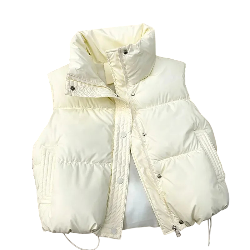 Dámská zimní vesta s rolákem a kapsičkami Jednobarevná hřejivá vesta se zapínáním na zip z bavlny a polyesteru Stylový doplněk pro chladné dny