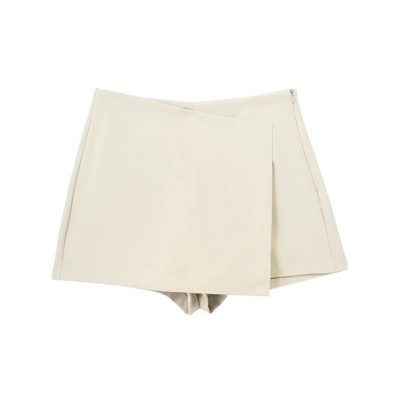 Stylová kraťasová sukně s asymetrickým střihem. Elegantní, pohodlná a vhodná pro každodenní outfity i formálnější příležitosti. Celý popis