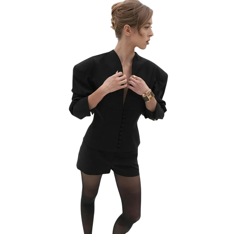 - Design: jednobarevné sako s volánky pro moderní a ženský vzhled