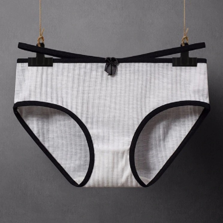 Kalhotky jsou zdobené mašlí a šňůrkami.