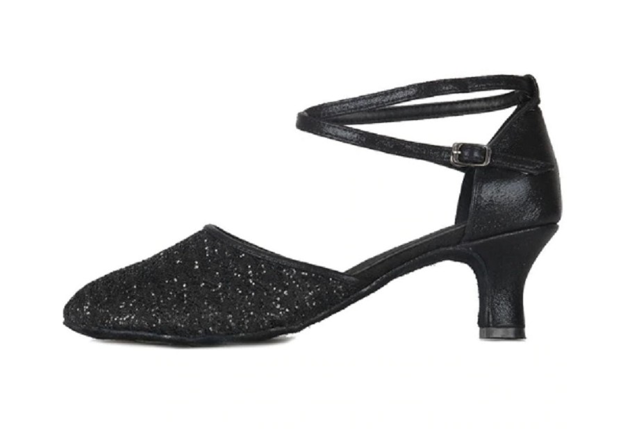 Tyto taneční boty na podpatku zdobené flitry jsou velmi pohodlné.