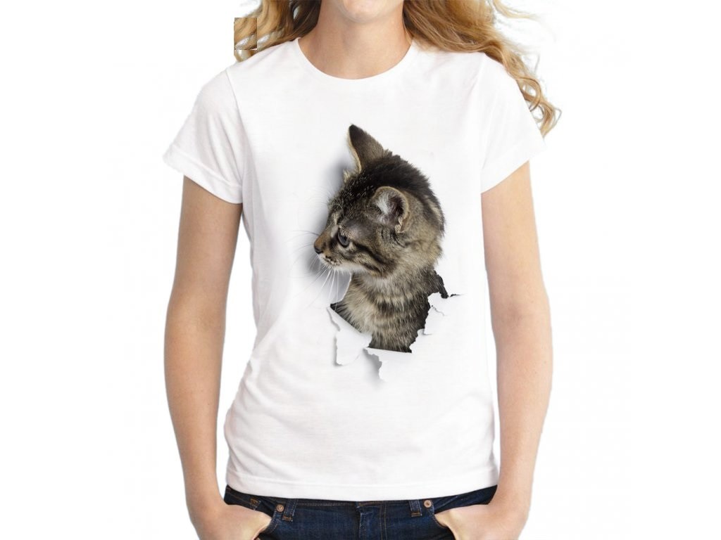 Dámské tričko 3D s kočkou J539