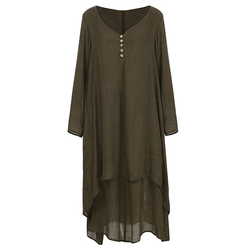 Dlouhé volné šaty s prodlouženými rukávy.