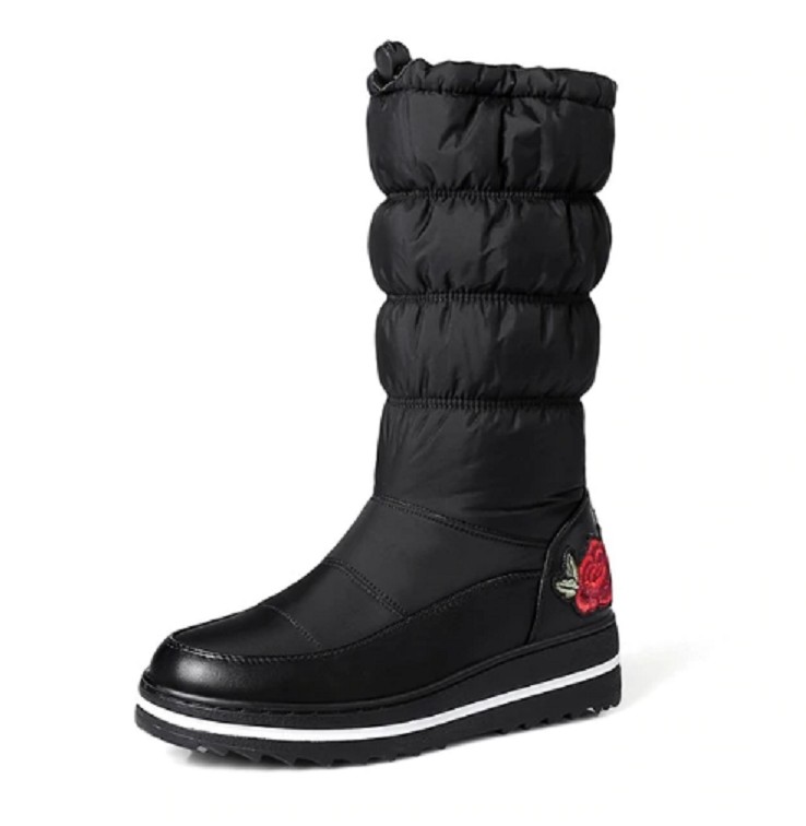 Tyto nádherné zimní boty mají na zadní části malou růži.