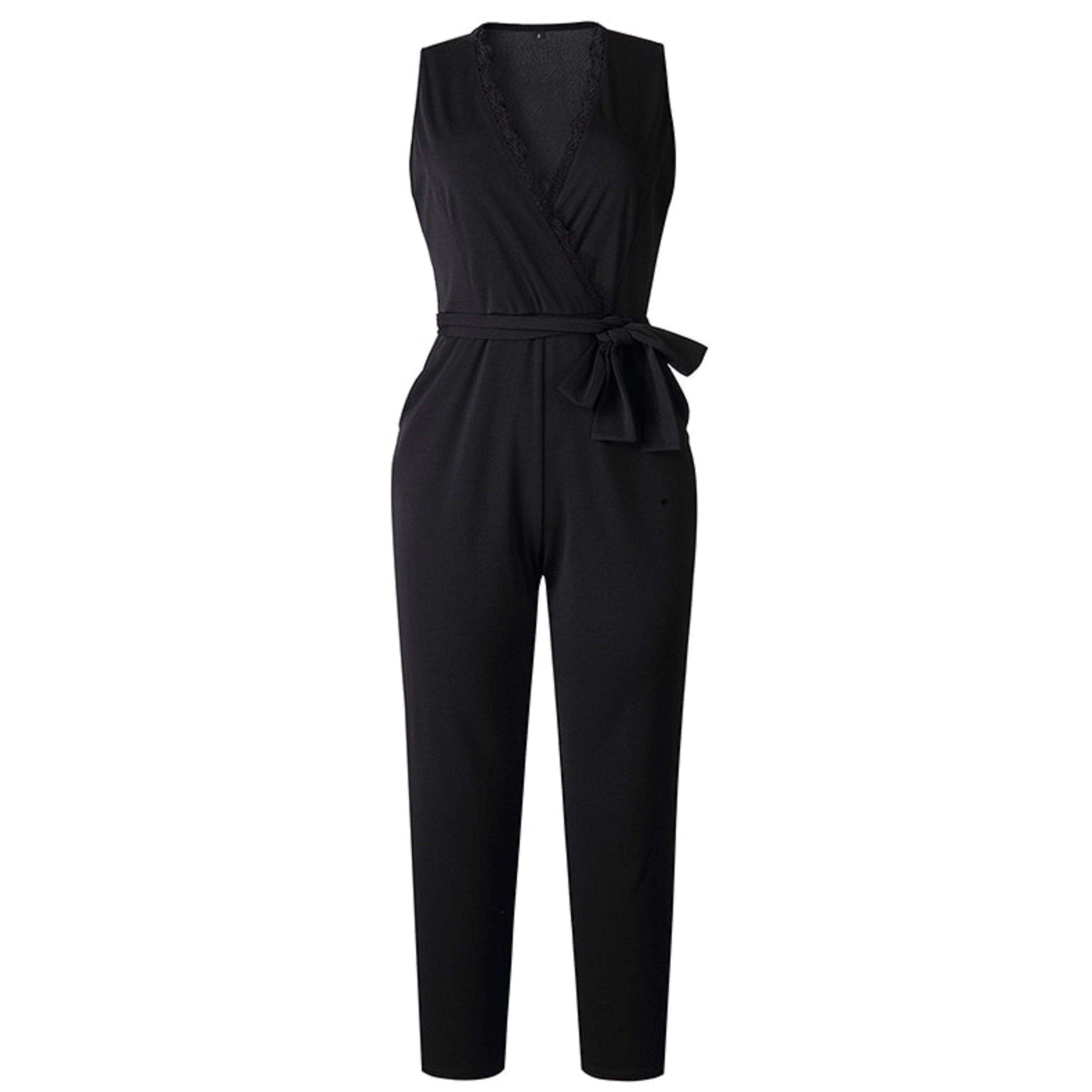 Dámský černý overal s vázáním v pase