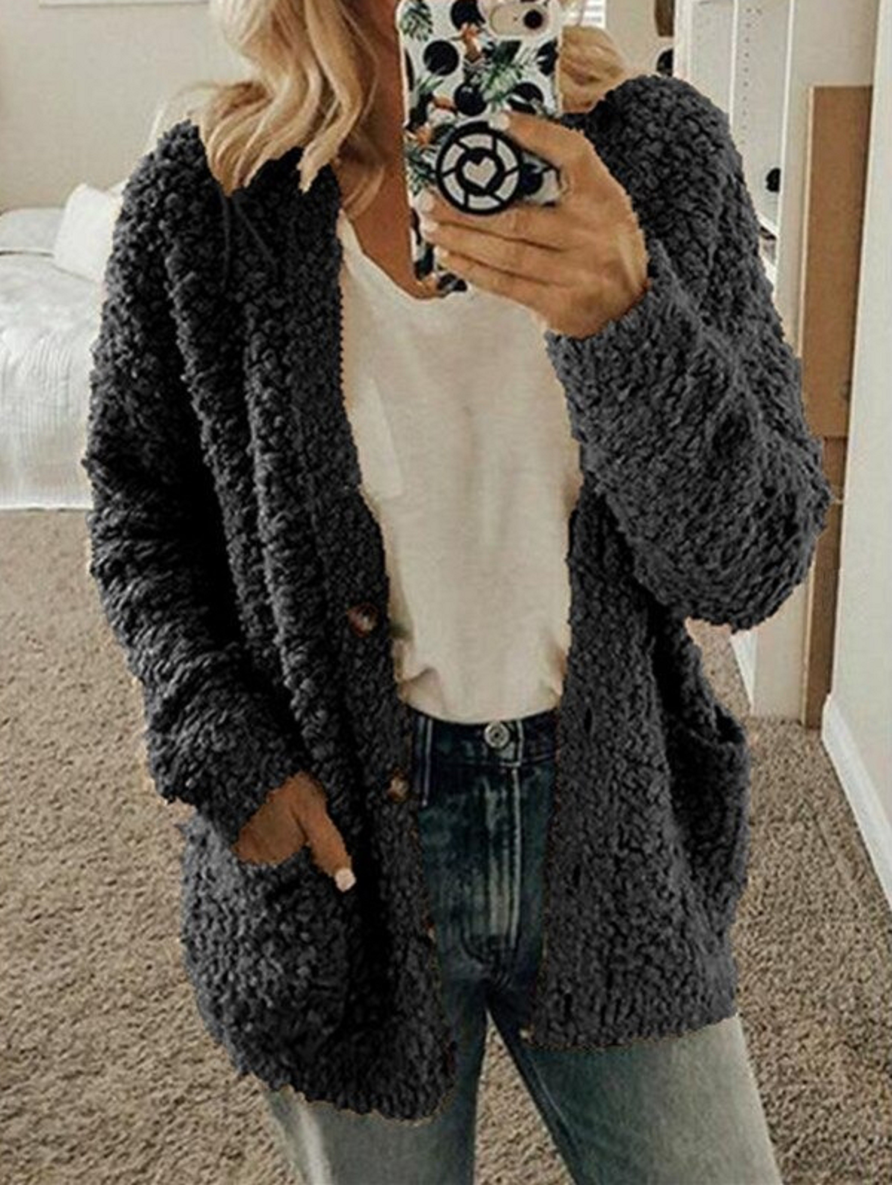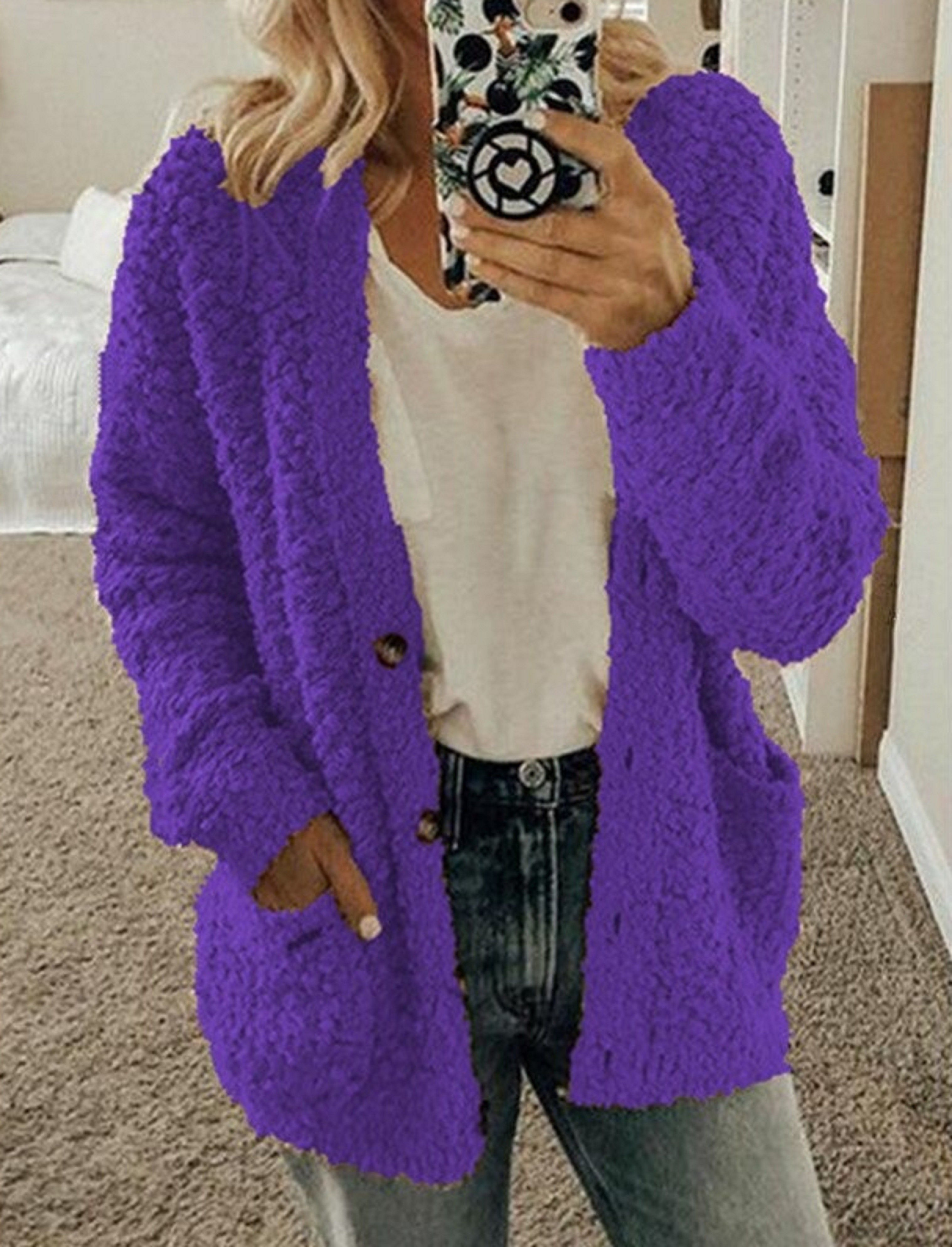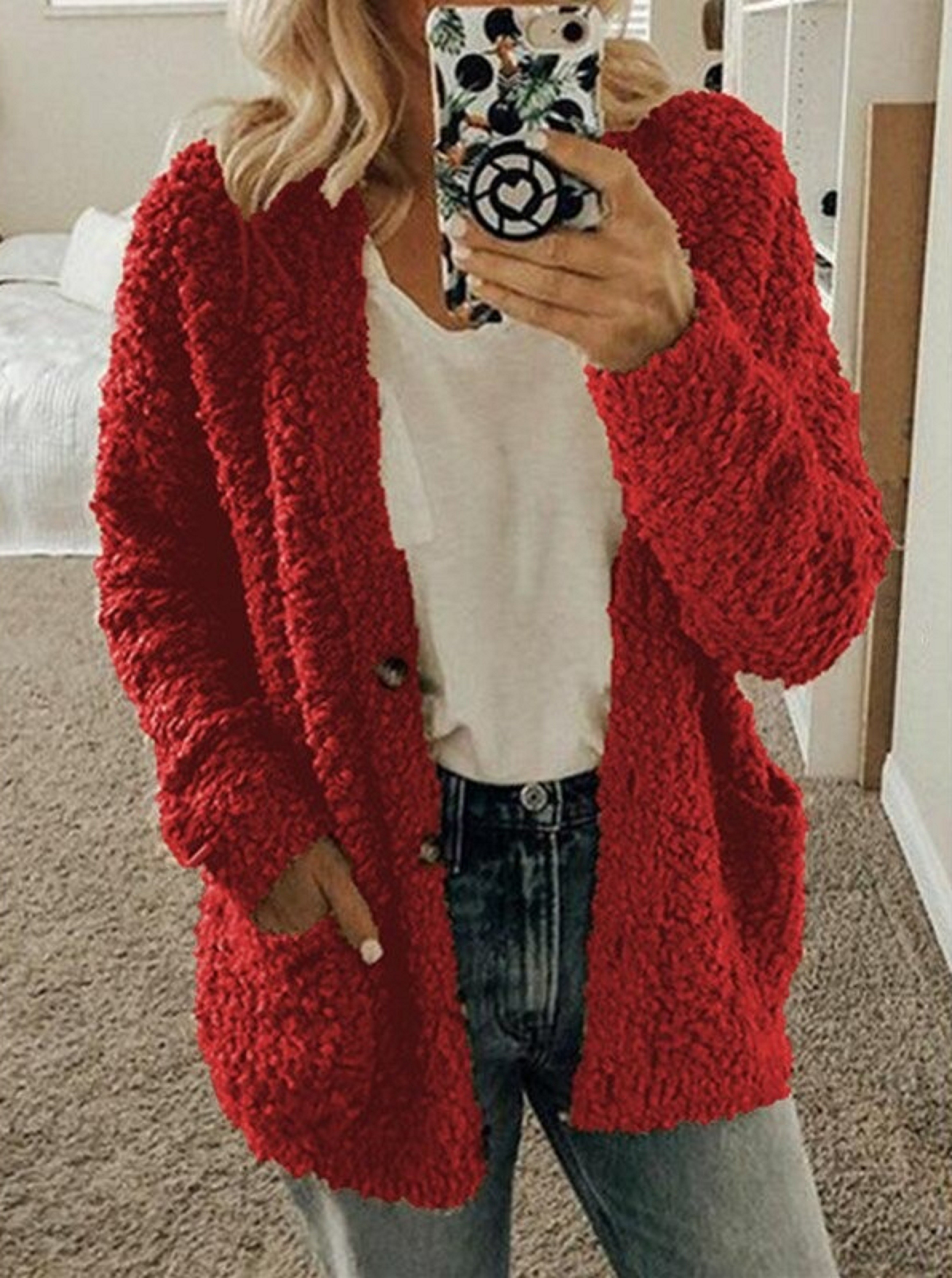 Dámský huňatý svetr s knoflíky