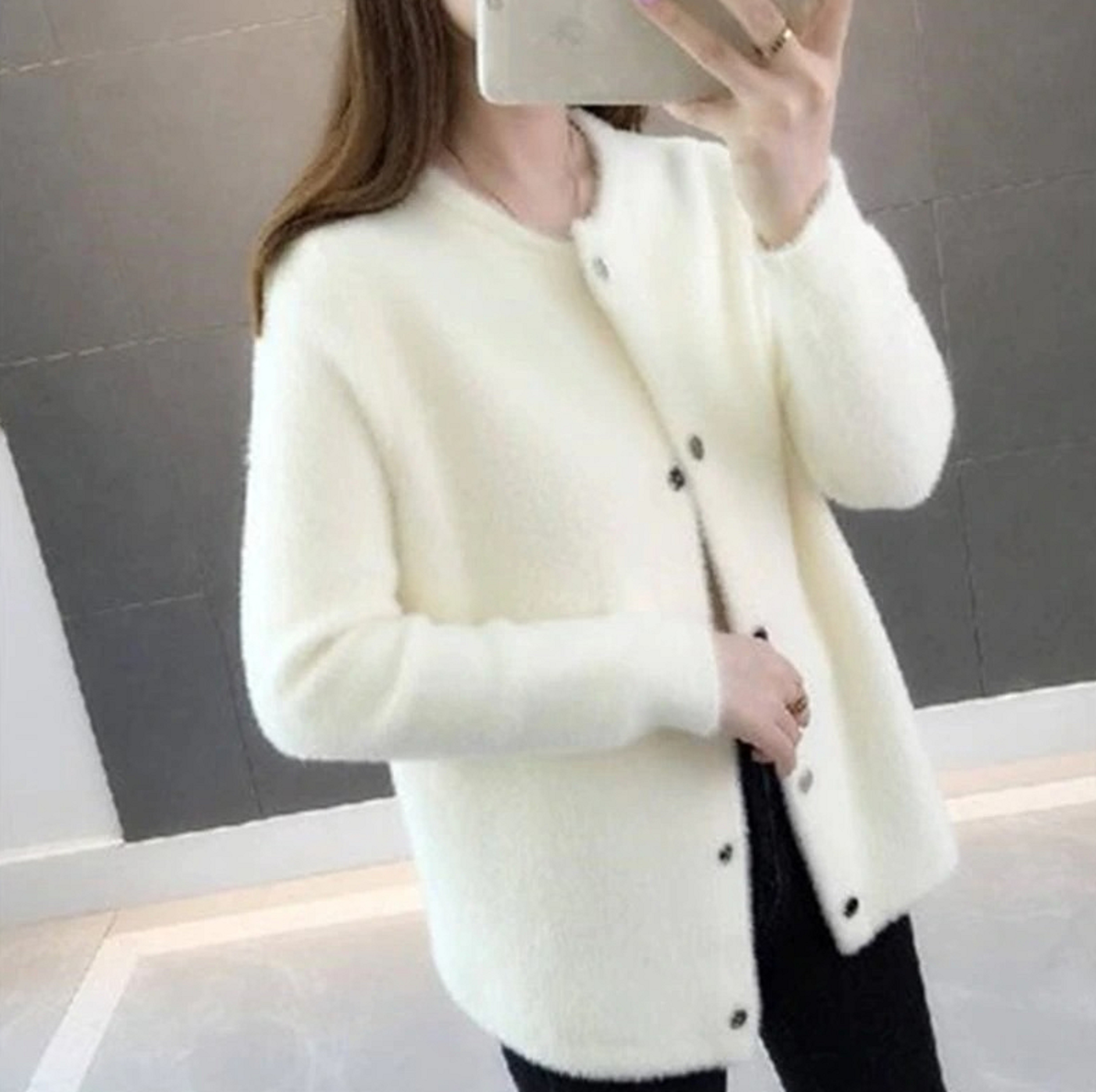 Dámský huňatý svetr s knoflíky