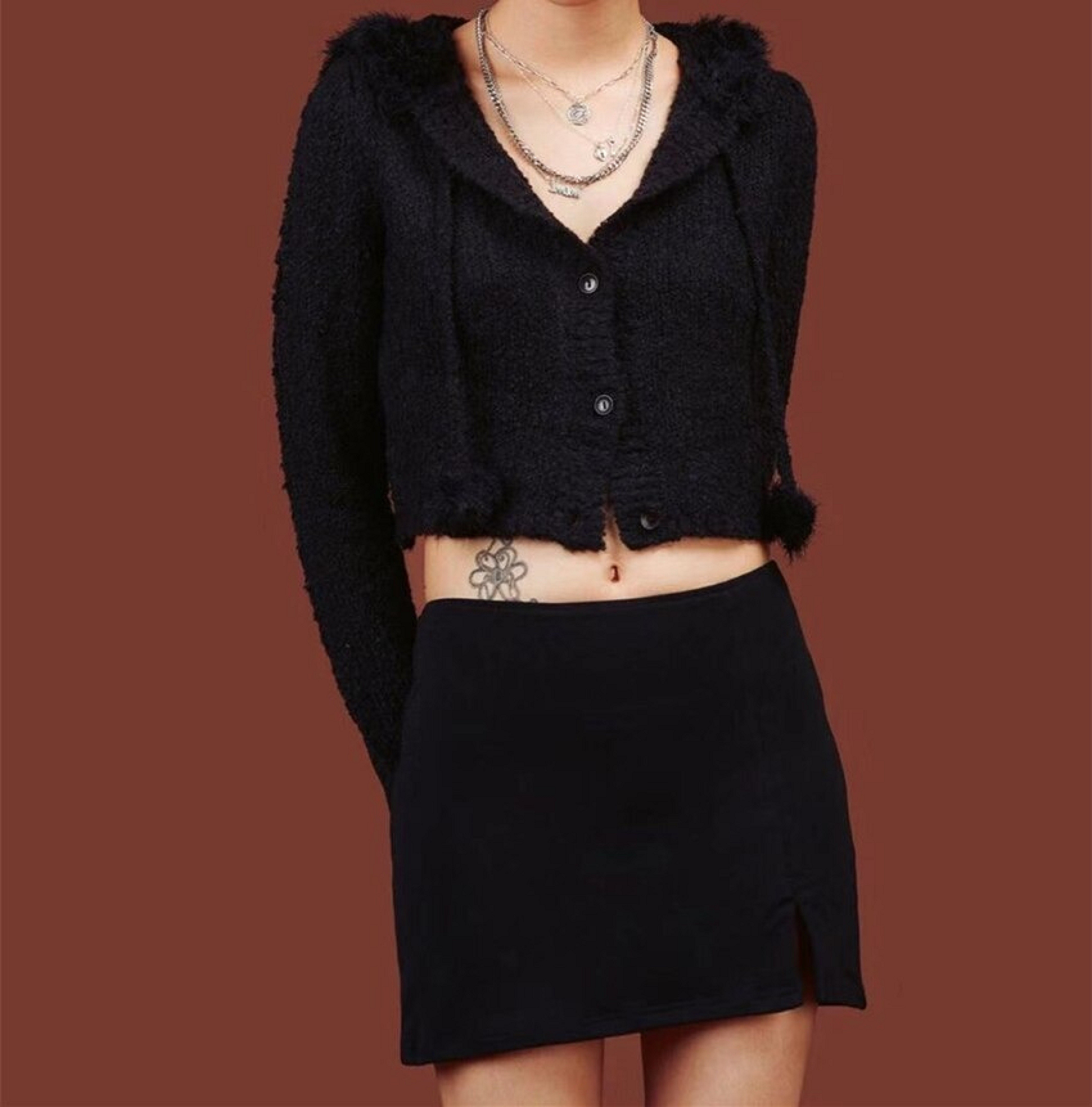 Dámský krátký svetr s kapucí