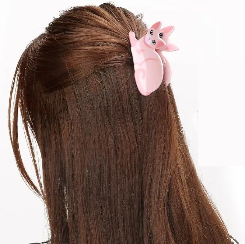 Tento vlasový doplněk vyniká nejen designem, ale také pohodlným používáním. Rozměr 8,1 x 8,1 cm je ideální pro menší až středně husté vlasy a umožňuje snadné vytvoření ležérních i upravených účesů. Díky motivu tvaru kočky působí spona jemně a hravě zároveň. Konstrukce je navržena tak, aby poskytovala pevné uchycení vlasů bez sklouzávání. Lehký materiál zajišťuje komfort i při dlouhodobém nošení a zároveň nezatěžuje účes. Celkový roztomilý design skvěle doplní každodenní outfit i romantický styling.