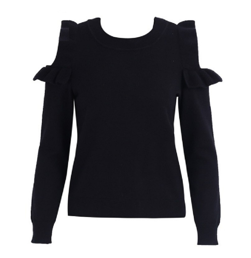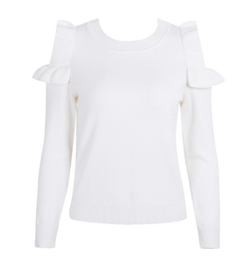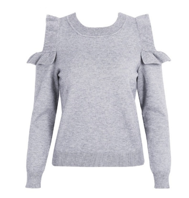 Dámský svetr s volánkovými průstřihy na ramenou J2449