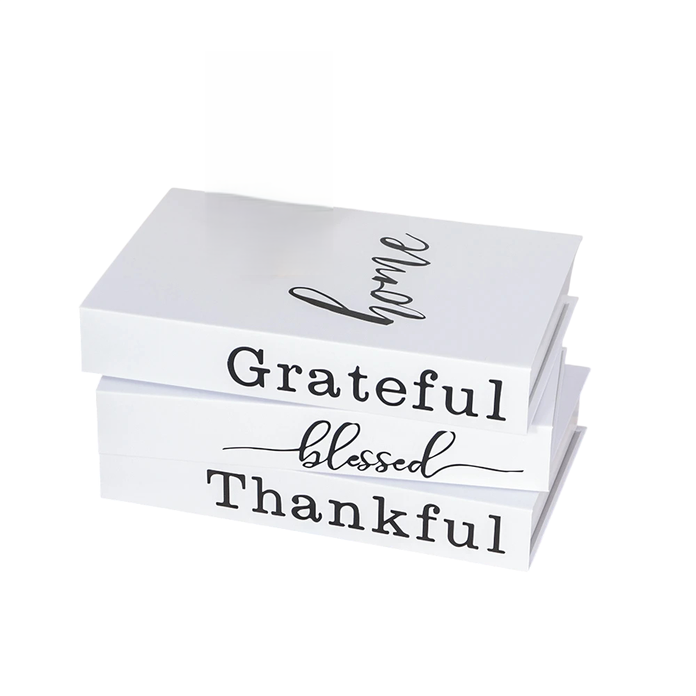 Dekorační falešné knihy 3 ks Neotevíratelné bílé motivační knihy Home Grateful Blessed Thankful dekorace