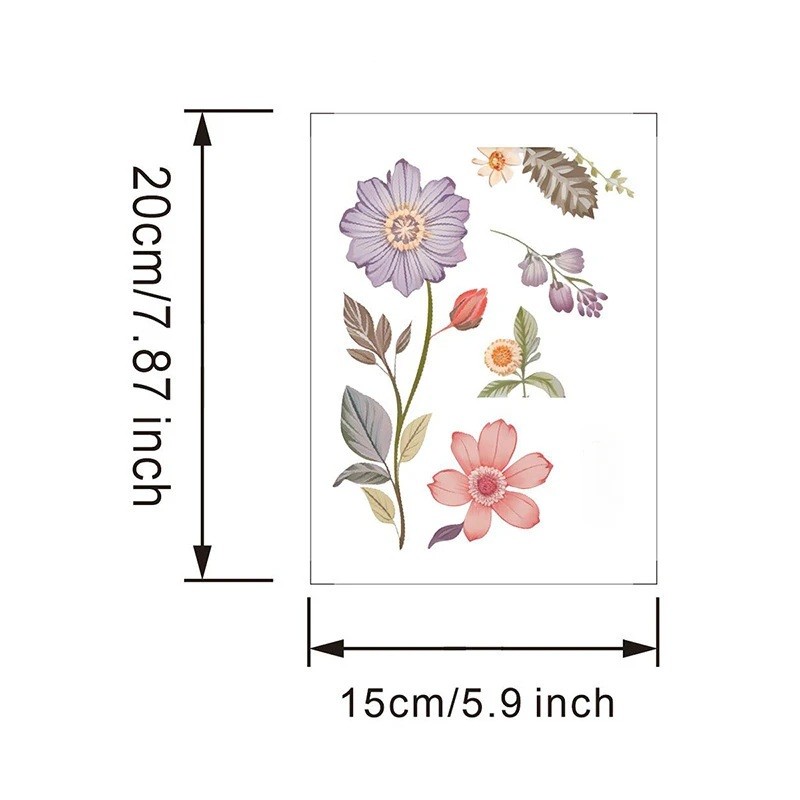 Dekorační samolepka květiny 20 x 15 cm Snadná aplikace Ozdobná nálepka na stěny, nábytek a hladké povrchy Jemná květinová dekorace