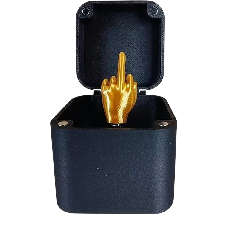 Dekorační žertovná krabička s vyskakovacím gestem 5 x 5 x 5 cm Vtipná překvapivá dekorace Dekorační žertovná krabička je originální doplněk určený pro pobavení a nadsázku. Na první pohled působí nenápadně, po otevření však nabídne překvapivý efekt v podobě vyskakovacího gesta. Díky kompaktním rozměrům se hodí na stůl, polici nebo jako součást vtipné dekorace. Krabička je určena především pro žertovné a dekorační využití. Ideální jako recesistický dárek nebo doplněk pro milovníky humoru.