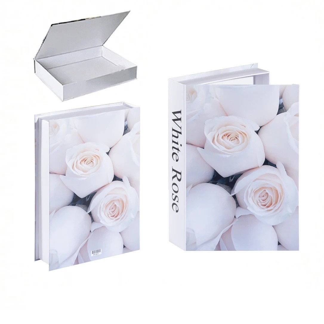Dekorativní falešná kniha s úložným prostorem, otevíratelná, design White Rose - Stylová dekorace s úložným prostorem pro elegantní interiéry