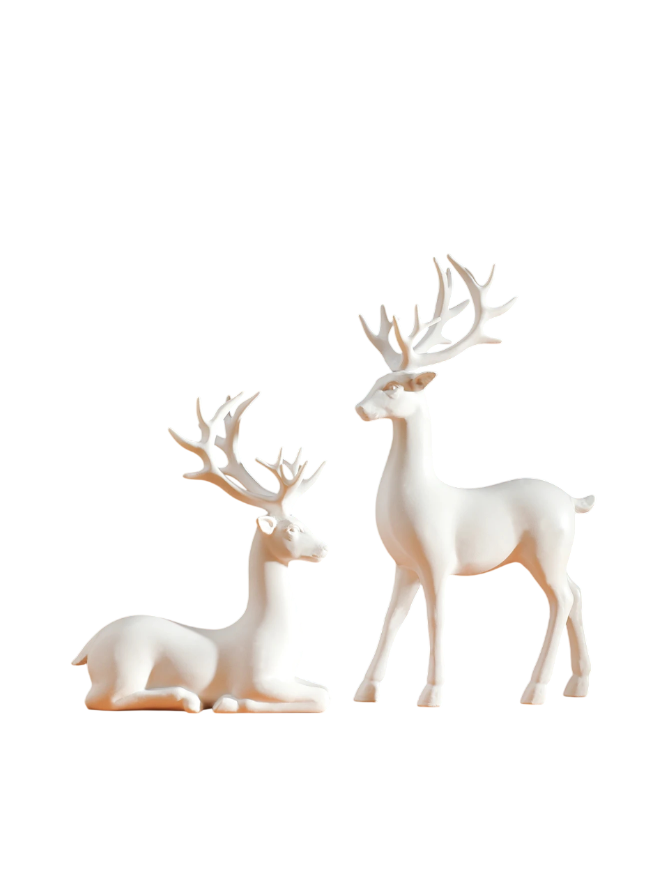 Sada dekorativních sošek jelenů představuje elegantní doplněk pro moderní i minimalisticky laděné interiéry. Kombinace dvou různých pozic – ležícího a stojícího jelena – vytváří harmonický celek, který působí vyváženě a přirozeně. Díky jednoduchému provedení se hodí do různých stylů bydlení.