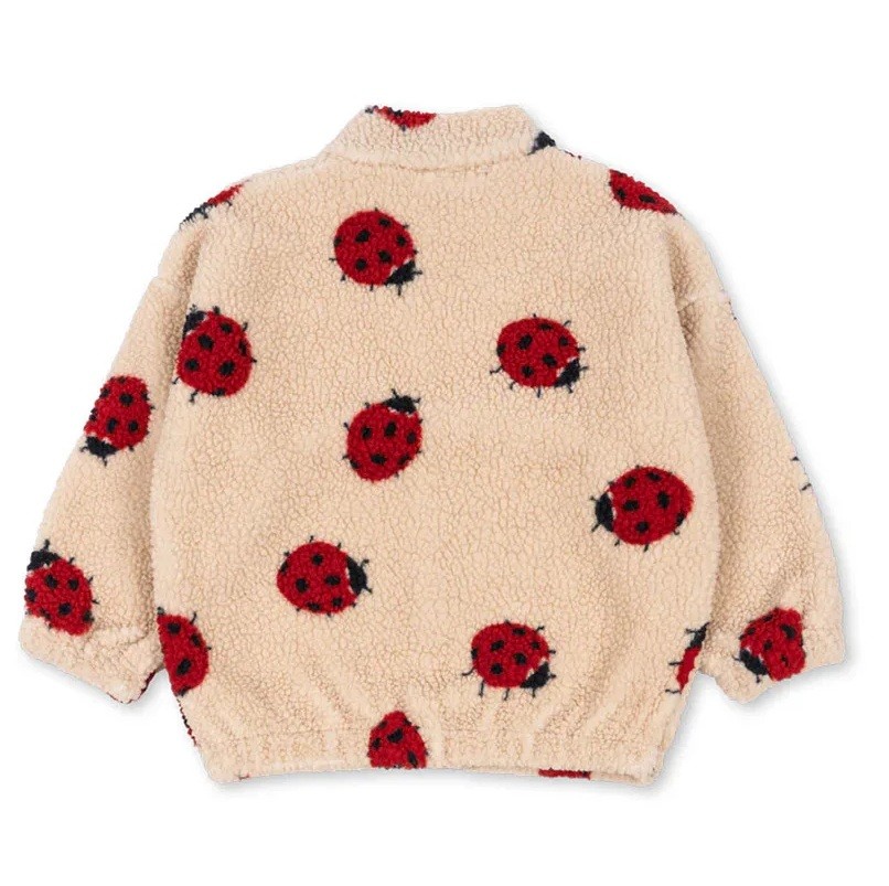 Dětská zimní bunda béžová s motivem berušek Plyšová bavlněno-polyesterová bunda na zip s vysokým krkem Teplý pohodlný zimní kabátek