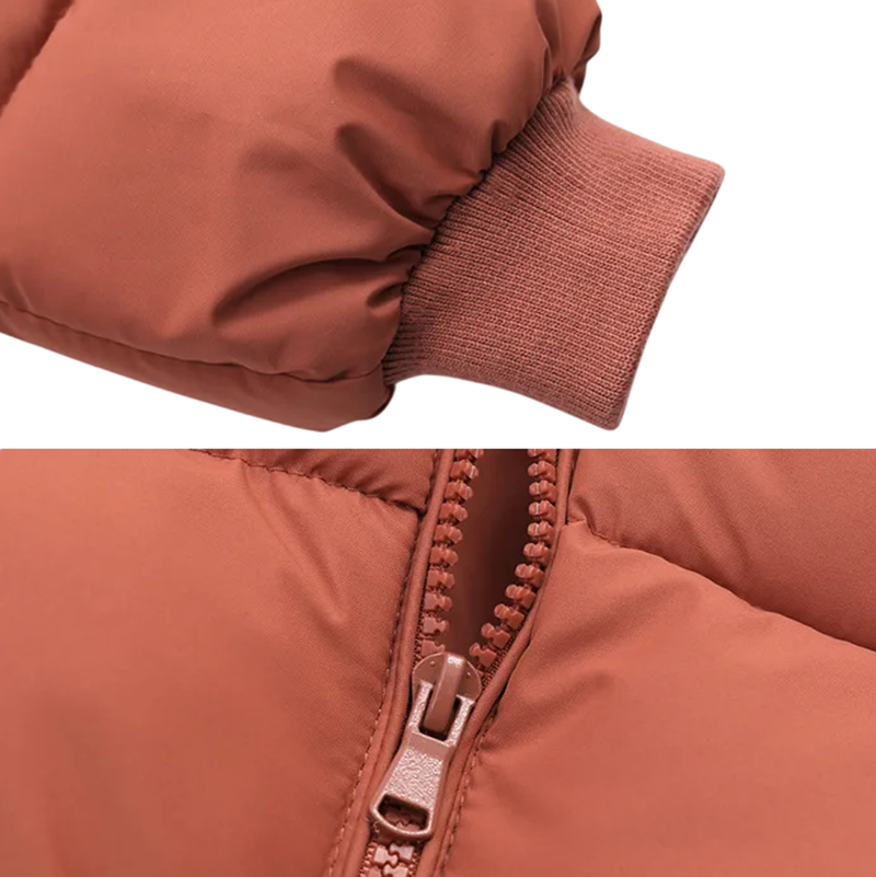Tato dětská zimní bunda v unisex provedení nabízí spojení pohodlí, hřejivosti a roztomilého designu vhodného pro každodenní nošení v chladném období. Je vyrobena z kvalitního polyesternu a bavlny, které poskytují pevnost, stabilitu a příjemný pocit při nošení. Vnitřní podšívka z bavlny zajišťuje komfortní hřejivost a jemnost na dotek. Díky praktickému zapínání na zip se bunda snadno obléká a svléká, což ocení děti i rodiče. Unisex střih je ideální pro chlapce i dívky a hodí se do školy, na procházky i venkovní hry.