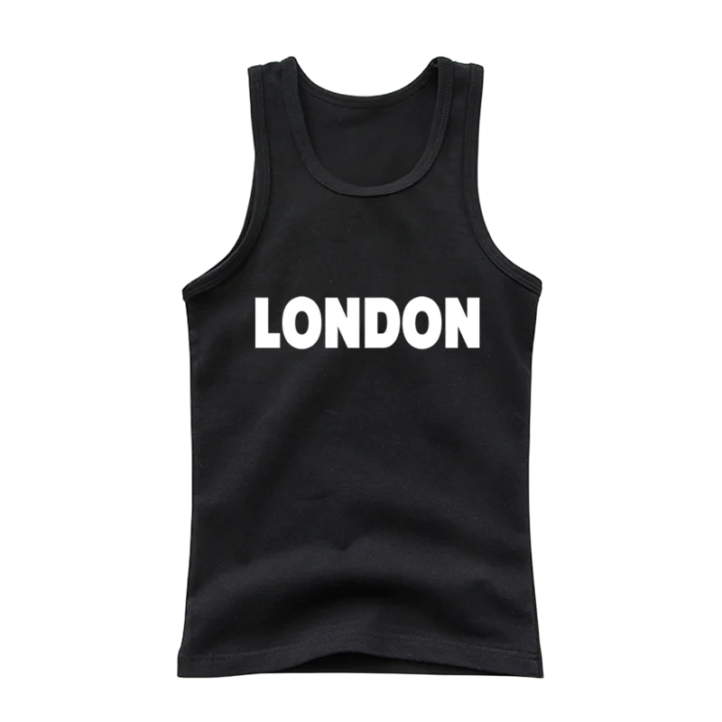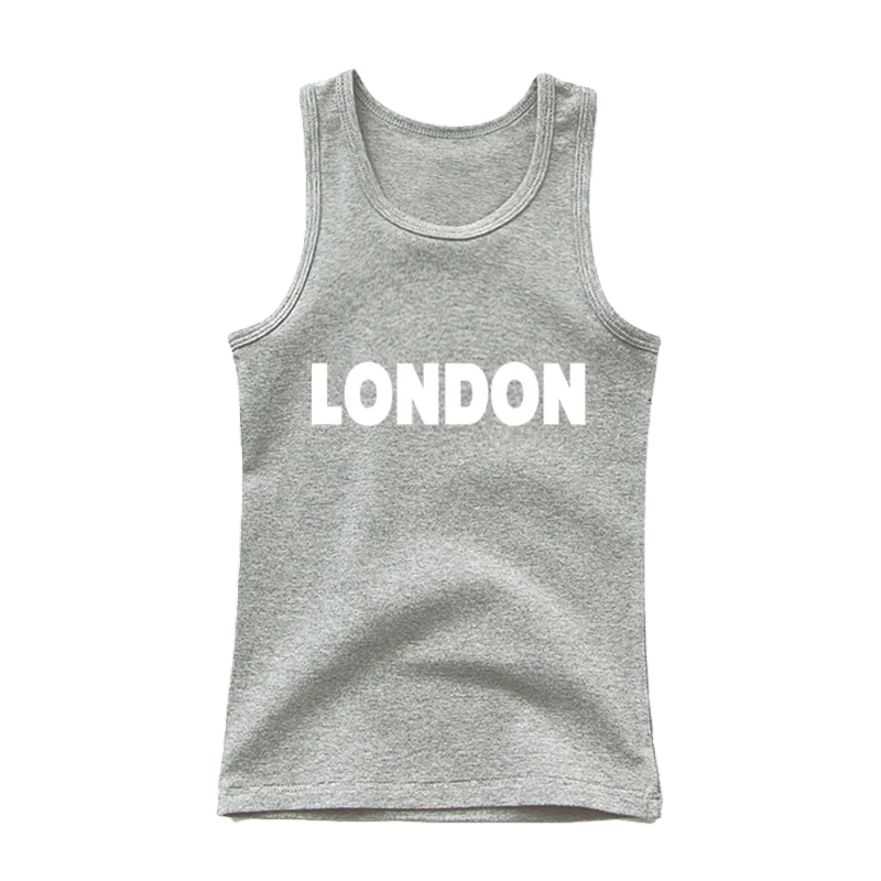 Dětské bavlněné tílko s potiskem London Jednobarevné tričko bez rukávů s O výstřihem Pohodlný letní top pro chlapce a dívky Různé barvy