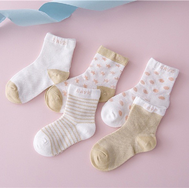 Ponožky mají různé potisky jako kolečka, hvězdičky, proužky atd.
