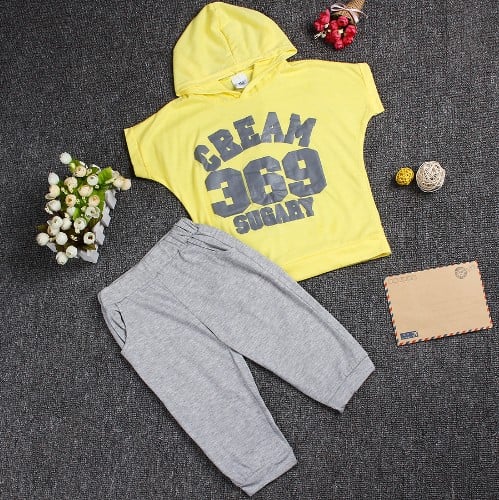 Dětský letní set - tričko a kalhoty - Žluto-šedý