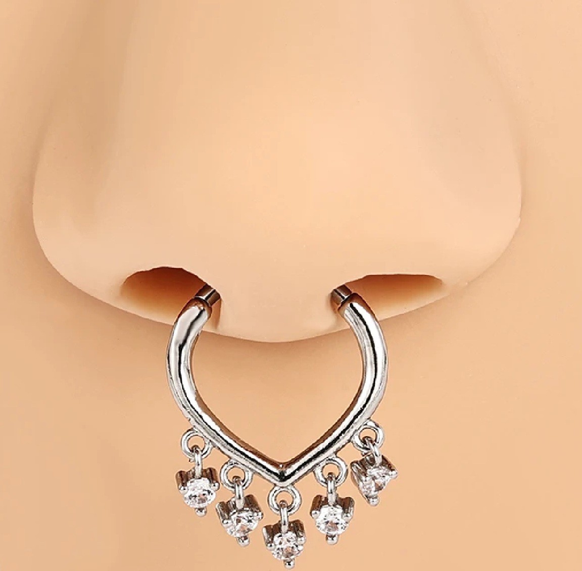 Tento kulatý stříbrný piercing je vyroben z nerezové oceli a zdoben diamantovým motivem, který tvoří hlavní vizuální prvek šperku. Diamanty jsou doplněny jemnými stříbrnými detaily, díky nimž působí design vyváženě a čistě. Kulatý tvar dodává piercingu univerzální vzhled, který se snadno kombinuje s dalšími náušnicemi nebo piercingy. Rozměry 10 x 1,2 mm zajišťují decentní provedení vhodné pro každodenní nošení. Šperk je navržen tak, aby působil nenápadně, ale zároveň byl vizuálně zajímavý.