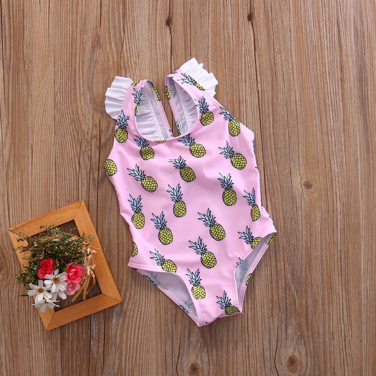 Dívčí jednodílné plavky s ananasy - Růžové