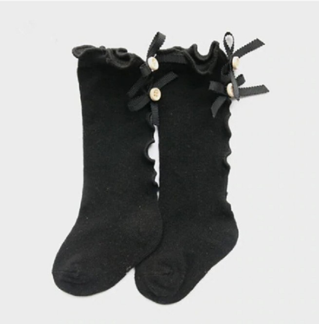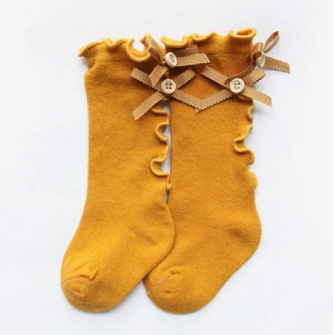 Podkolenky zdobí na zadní straně mašličky s knoflíky.