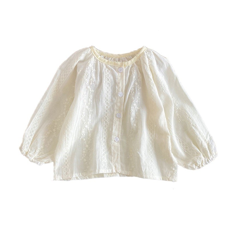 Dívčí podzimní top s dlouhým rukávem Lucernový střih Bavlna Polyester Spandex Sladká výšivka O výstřih Módní roztomilý top pro holčičky Různé barvy