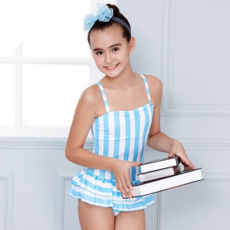 Dívčí pruhované plavky se sukní J1894