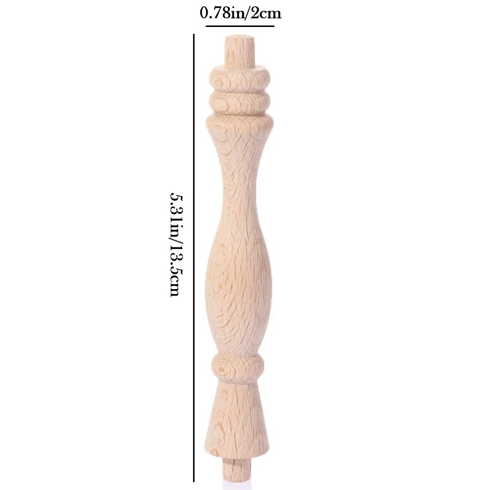 Design nohy je tvořen detailním soustružením, které zahrnuje jemné přechody a tvarované části. Soustružený dekorativní profil dodává noze charakter a činí z ní nejen funkční, ale i vizuálně zajímavý prvek. Přírodní světlé dřevo zachovává autentickou kresbu materiálu, která se může lišit kus od kusu. Povrch je hladký a připravený pro případné další úpravy, například lakování, moření nebo olejování.