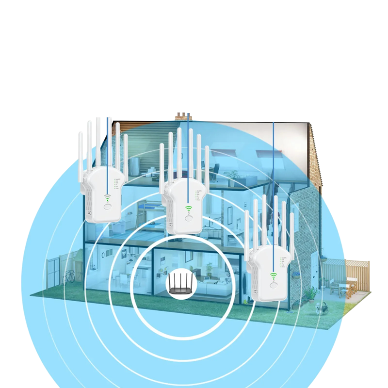 Dvoupásmový WiFi router a zesilovač signálu 5 GHz 1200 Mb/s bezdrátový repeater s režimem AP a router bílý pro rozšíření pokrytí domácí sítě